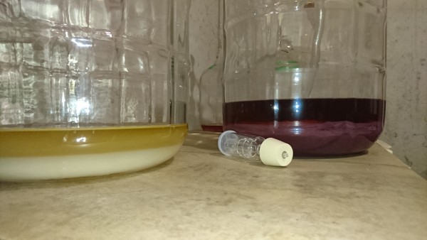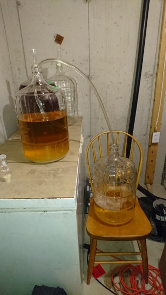 Now I have to rack two more five gallon carboys over. I need to get them off the lees to prevent unwanted influences to the flavour. The lavender blackberry container is sitting on 3 inches of lees, and honestly, it looks gross. There is lots of debris left over from the 10 lbs of blackberries I had in there. Racking is easy and I’m sure most of you know how it’s done. I just use a 3 ft siphon hose to transfer everything, nothing fancy.