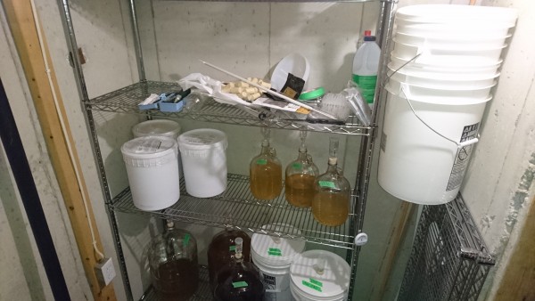 Yeah, that’s my little corner devoted to all things delicious and alcoholic. It’s not much but it works for me. Thankfully, mead doesn’t require half the fancy gadgets the Beerheads use. I wouldn’t be able to make heads or tails of it. Mead is simple, get everything together and wait it out. It will get there eventually. And that’s what I like about it.